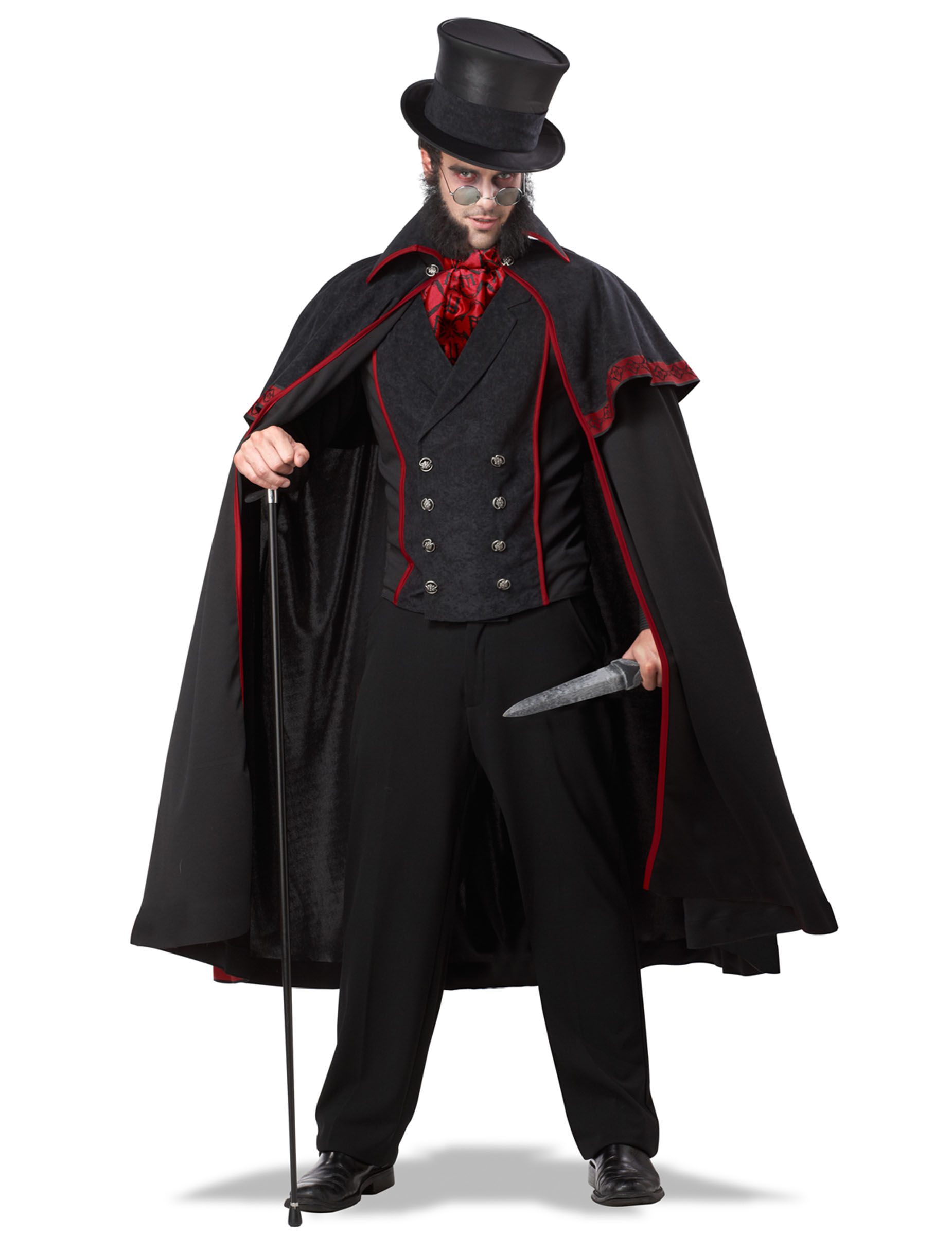 Ce costume de Jack l’Eventreur est composé d’un manteau, d’un gilet, d’un jabot et d’un chapeau. (Couteau, canne, pantalons, et chaussures non inclus)