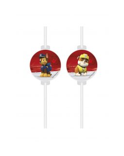 4 Pailles médaillon en carton Pat’ Patrouille prêt pour l’action